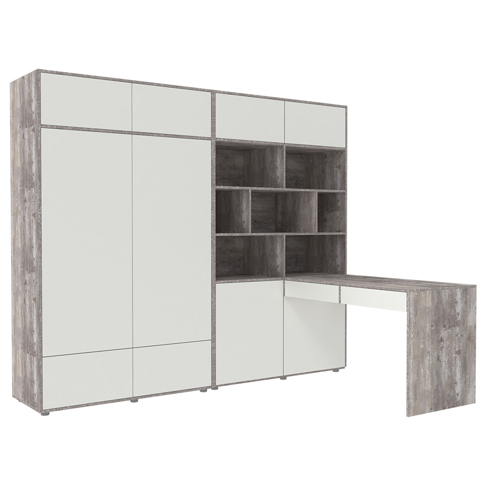 Стол письменный со стеллажом и шкафом 2400 Бетон Белый