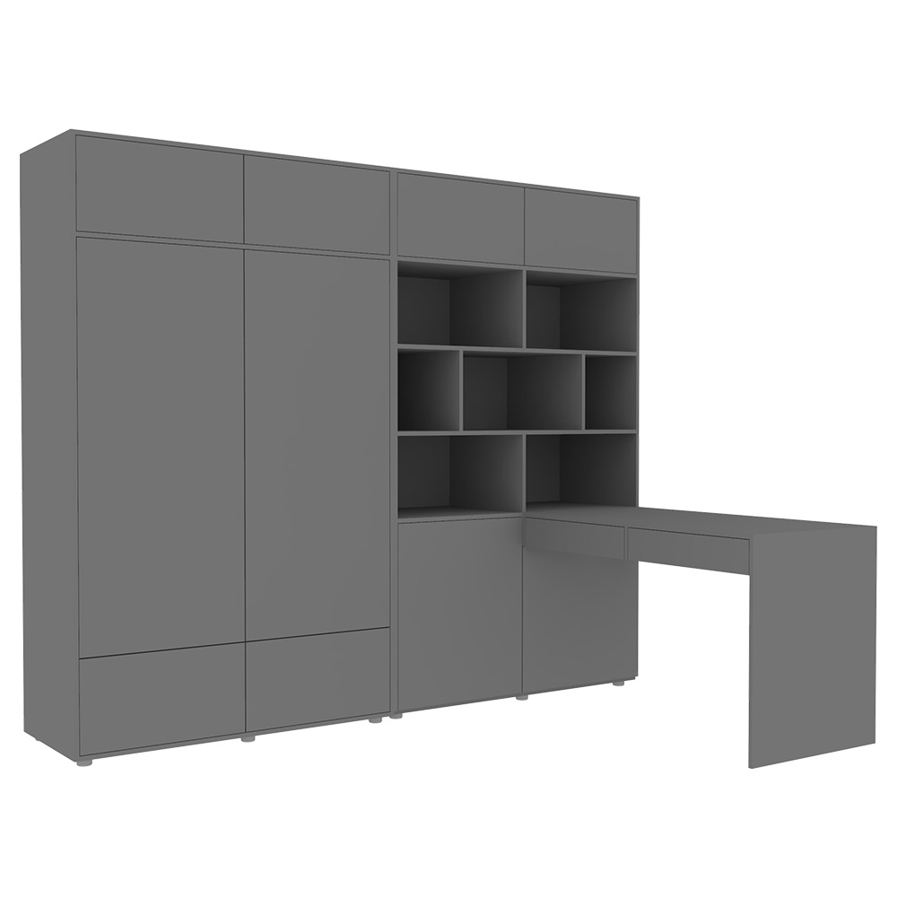 Стол письменный со стеллажом и шкафом 2400 Темно-серый Темно-серый