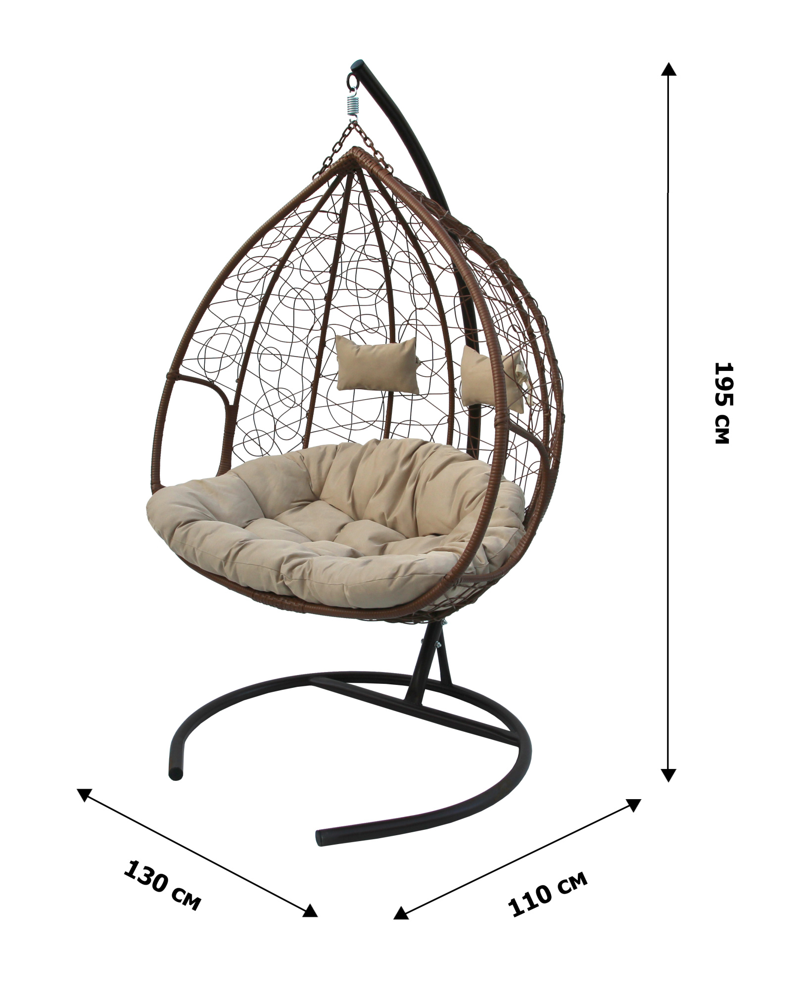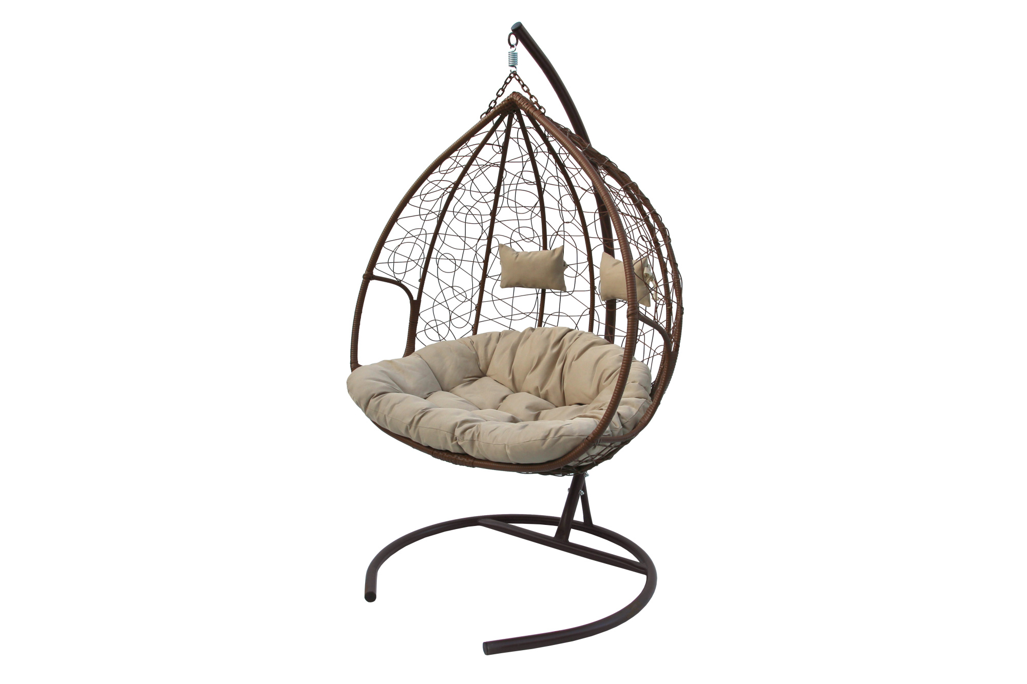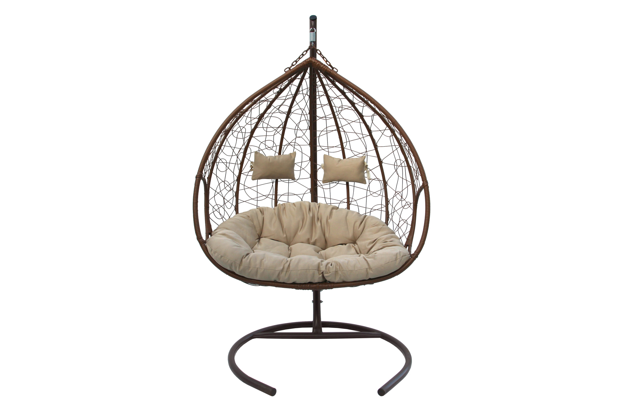 Кресло подвесное Garden Story двойное Феникс (стойка+осн.КОРИЧ,корзн.кор..,подуш.беже.3уп. (M))