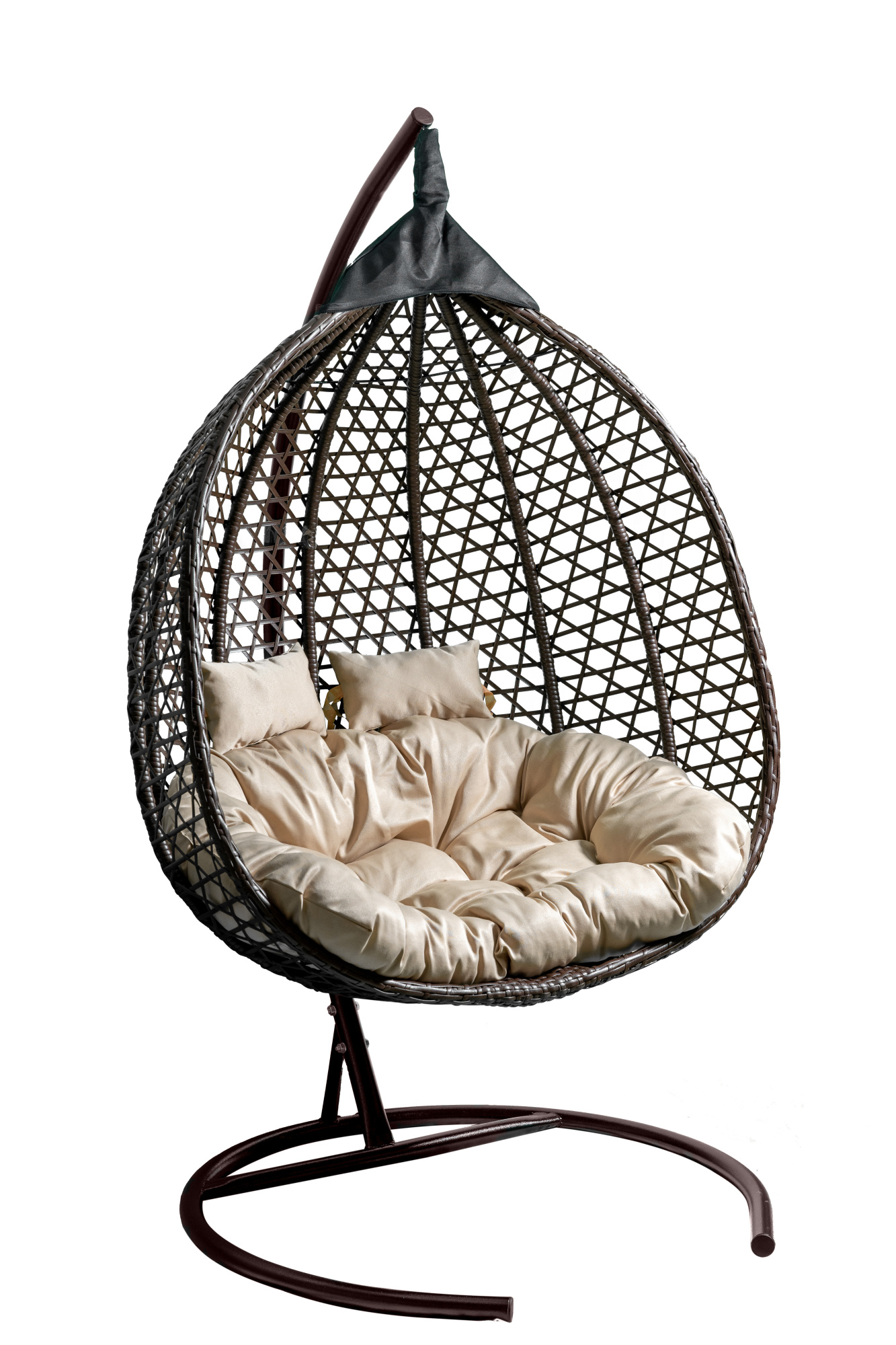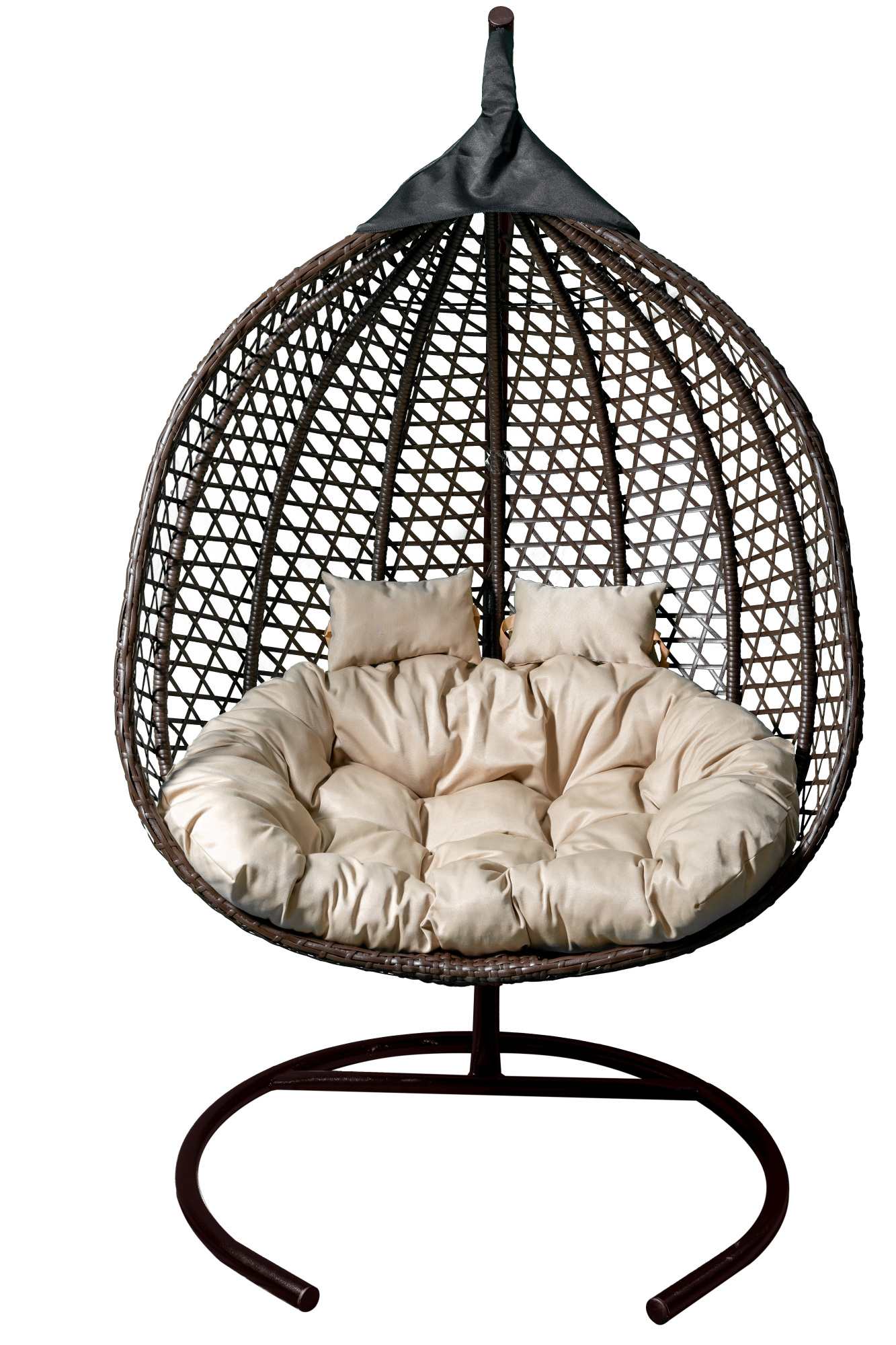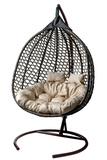 Кресло подвесное Garden Story двойное Фиджи (стойка+осн.КОРИЧ.,корзн.корич.,подуш.беж. 3уп. (М))