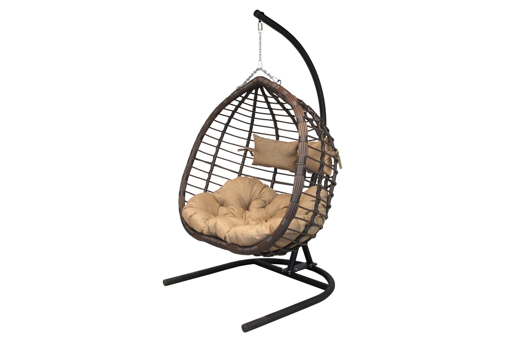 Кресло подвесное Garden Story двойное Ортис (стойка+основание черный,корзн. корич.,подуш. терракот 3уп. (В))