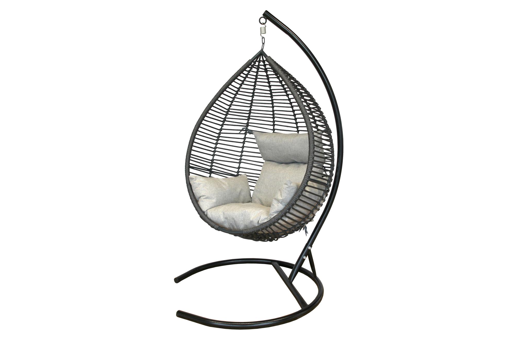 Кресло подвесное Garden Story Элис (стойка+осн.черн.,корзн.серая.,подуш.сер. 3уп.(М))