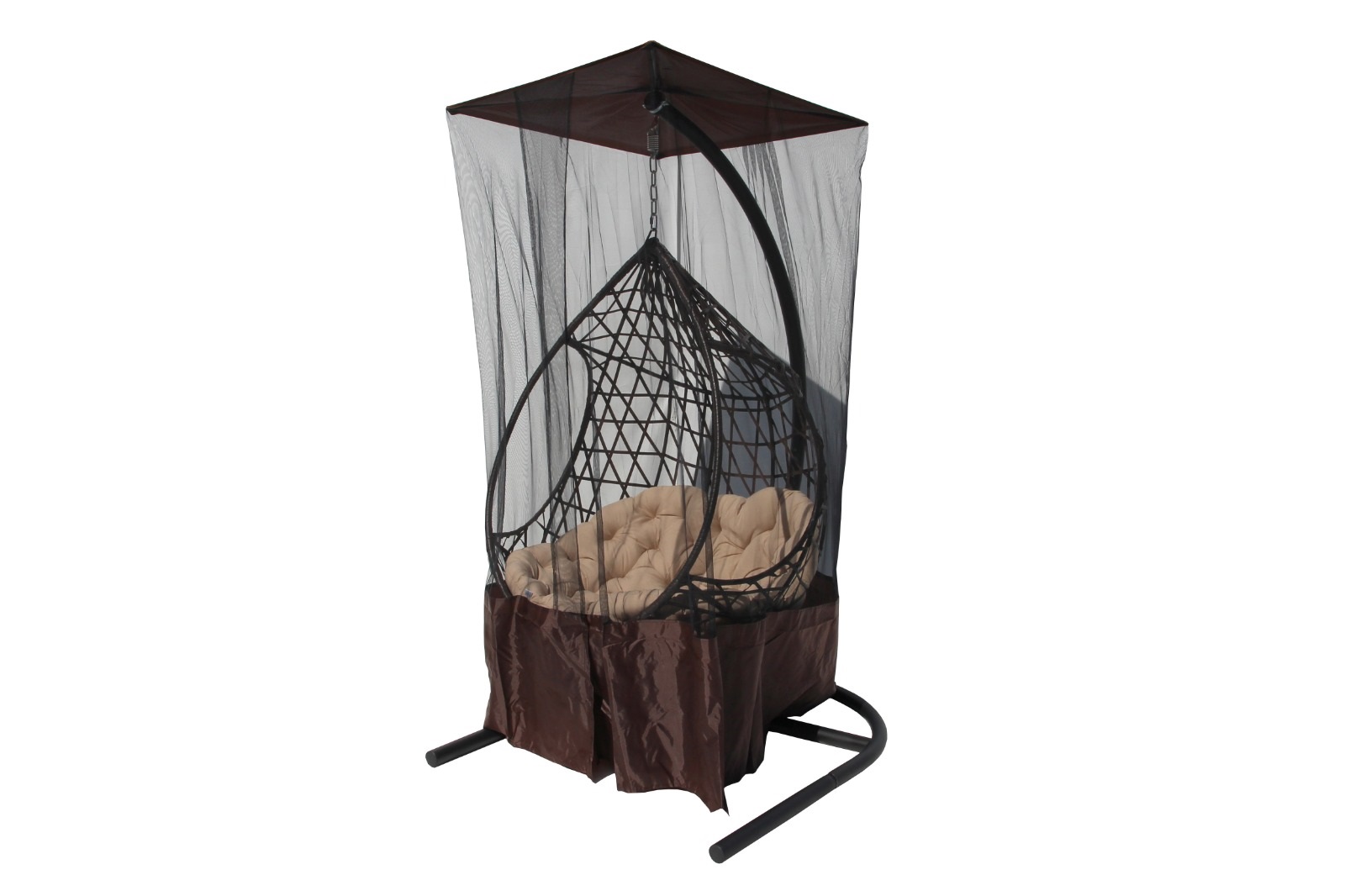 Кресло подвесное Garden Story Фелиса с крышей (стойка+основание черн, корз.корич, подуш.беж. 3уп. (Т))