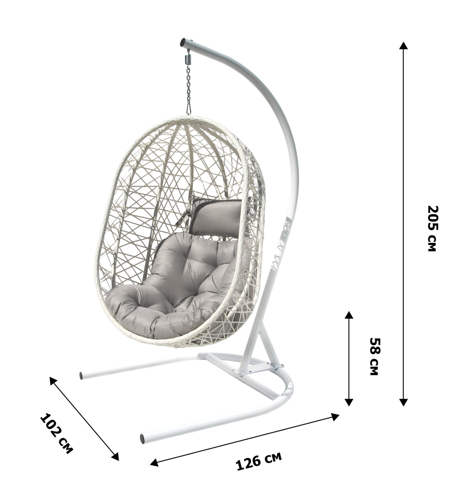 Кресло подвесное Garden Story Кокон XL (стойка+основание.бел.,корзн.бел.,подуш.серый. 3уп. (В))
