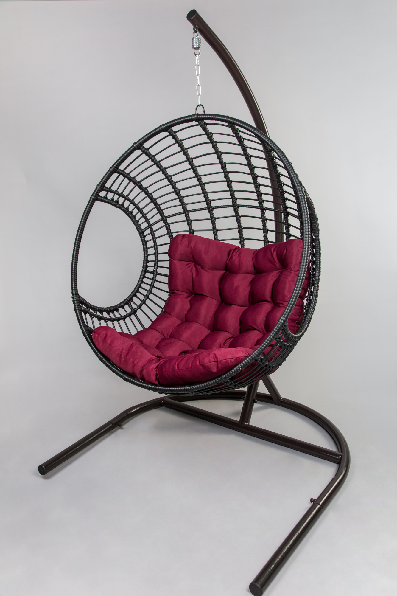 Кресло подвесное Garden Story Лондон (стойка+основание.черн.,корзн.черн.,подуш.бордовая, 3 уп. (Т))