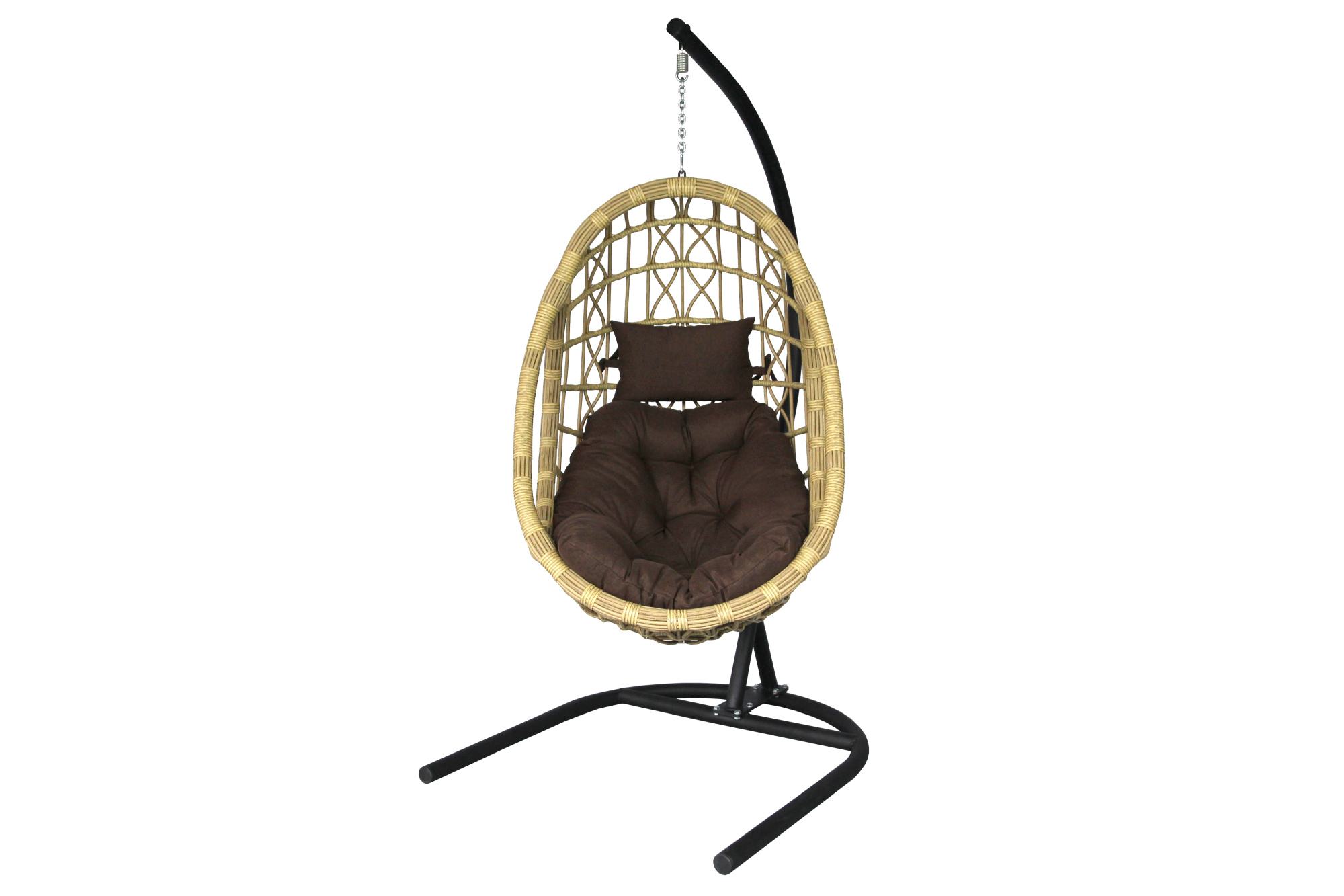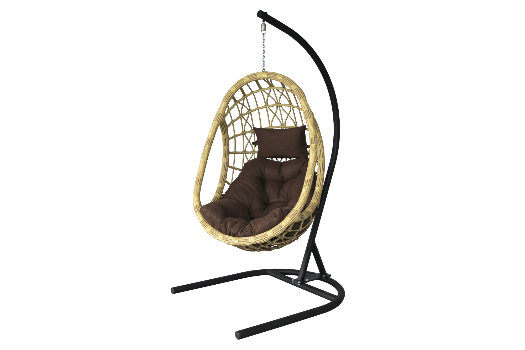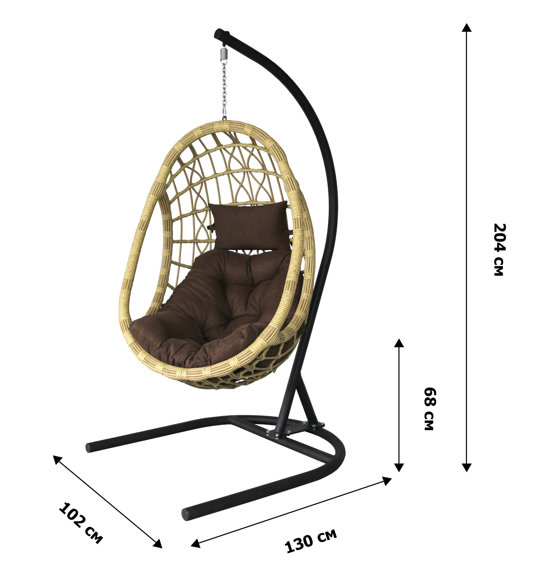 Кресло подвесное Garden Story Ривьера (стойка+основание.черн.,корзн.бежевая.,подуш.шоколад. 3уп. (В))