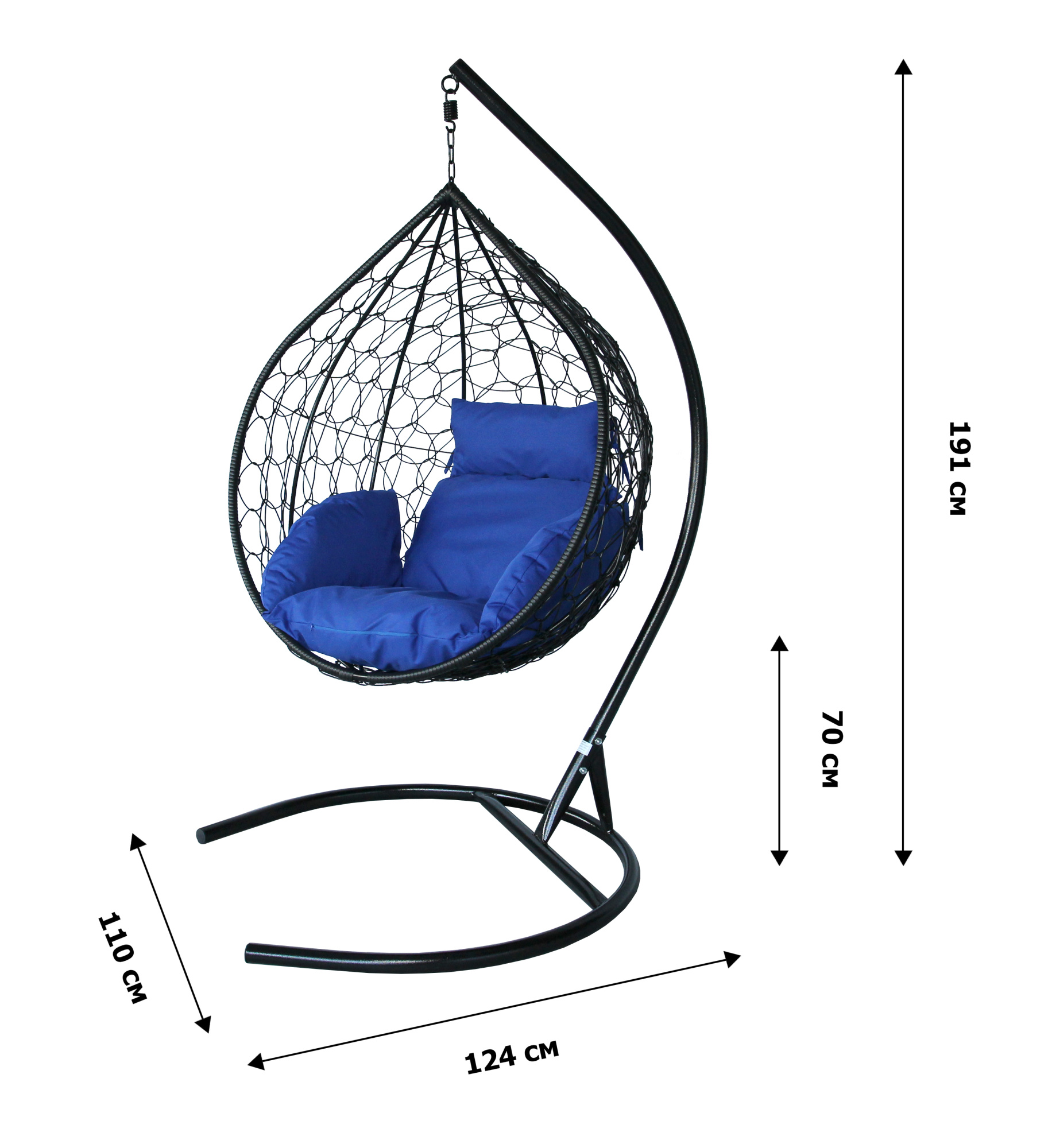 Кресло подвесное Garden Story Сфера Лайт (стойка+основание.чёрн.,корзн.чёрн.,подуш.синяя. 3уп. (Б))
