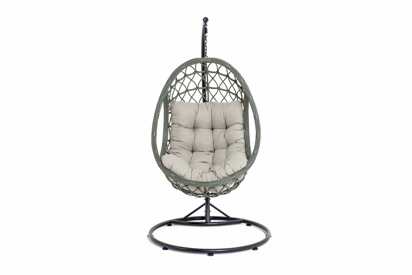 "Венеция" подвесное кресло-кокон из искусственного ротанга, цвет серый с бежевой подушкой | |