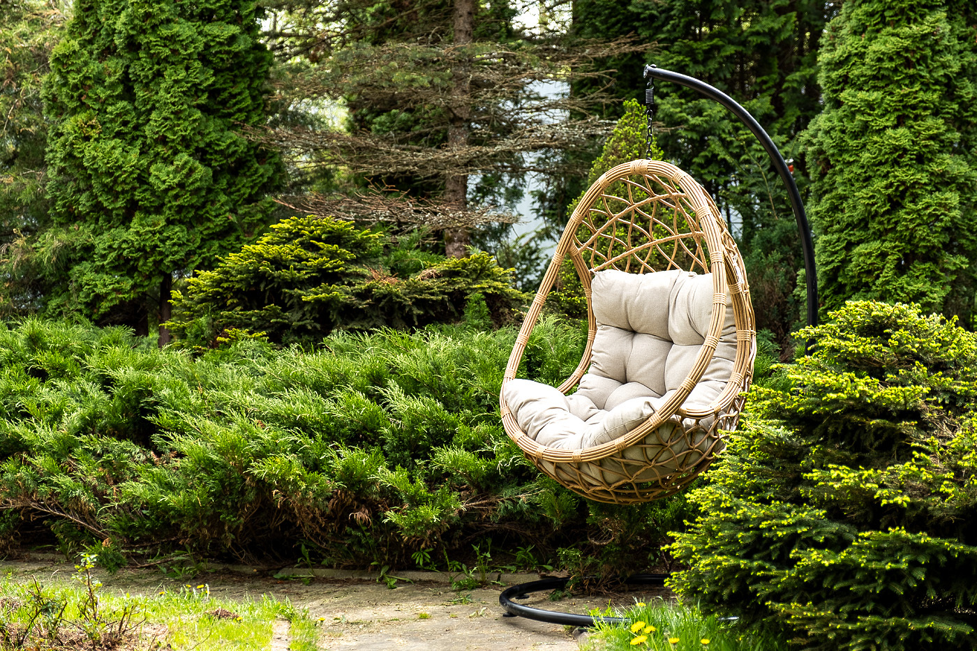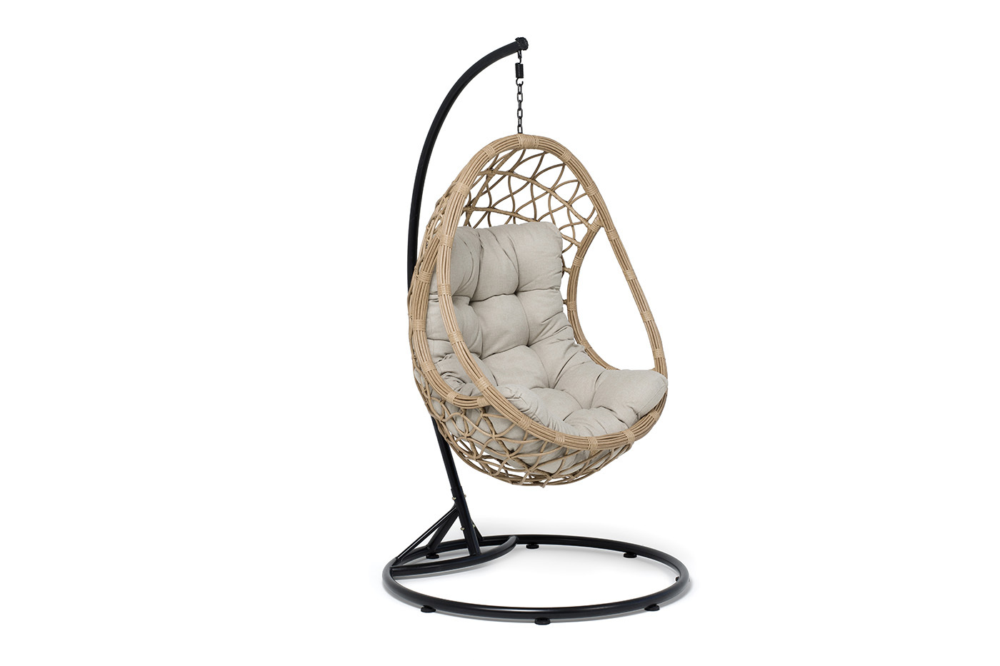 "Венеция" подвесное кресло-кокон из искусственного ротанга, цвет соломенный с бежевой подушкой | |