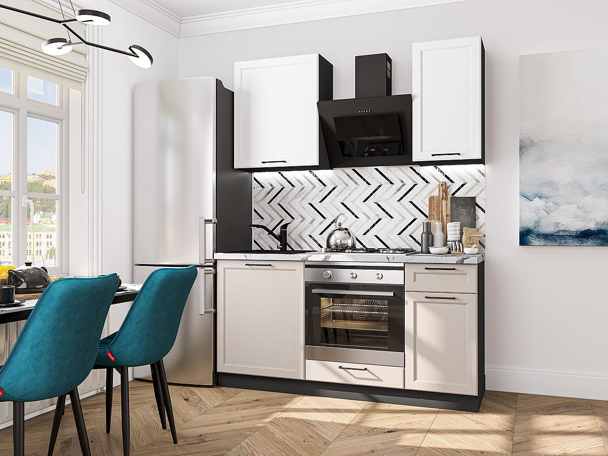 Прямая модульная кухня Барселона-06 Белый/Кашемир - Graphite 2140*1600*600