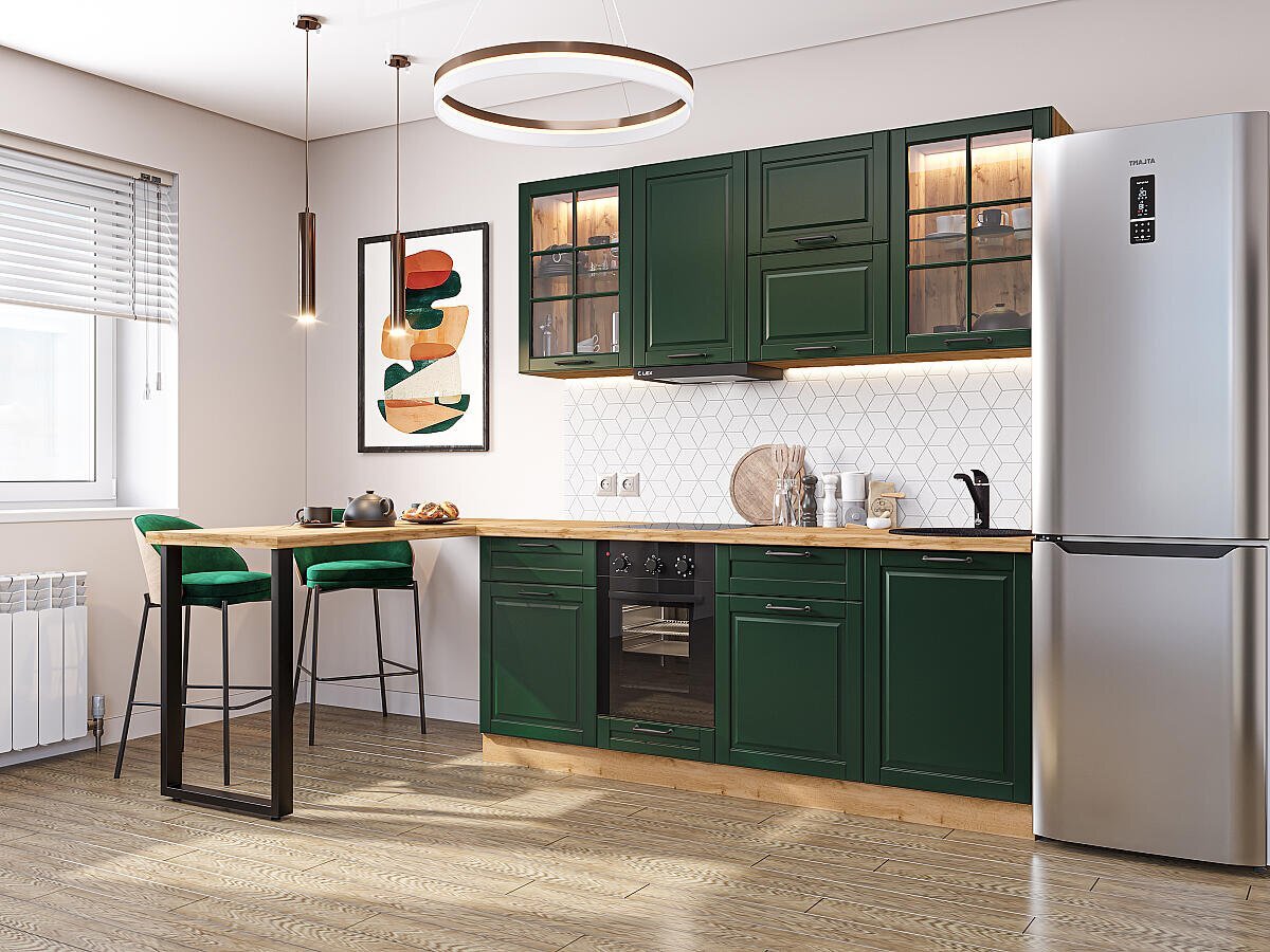 Прямая модульная кухня Дублин-03 Special Green - Дуб Вотан 2140*1950*600