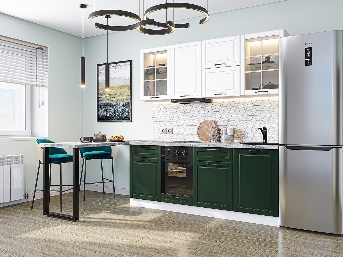 Прямая модульная кухня Дублин-03 Special White/Special Green - Белый 2140*1950*600