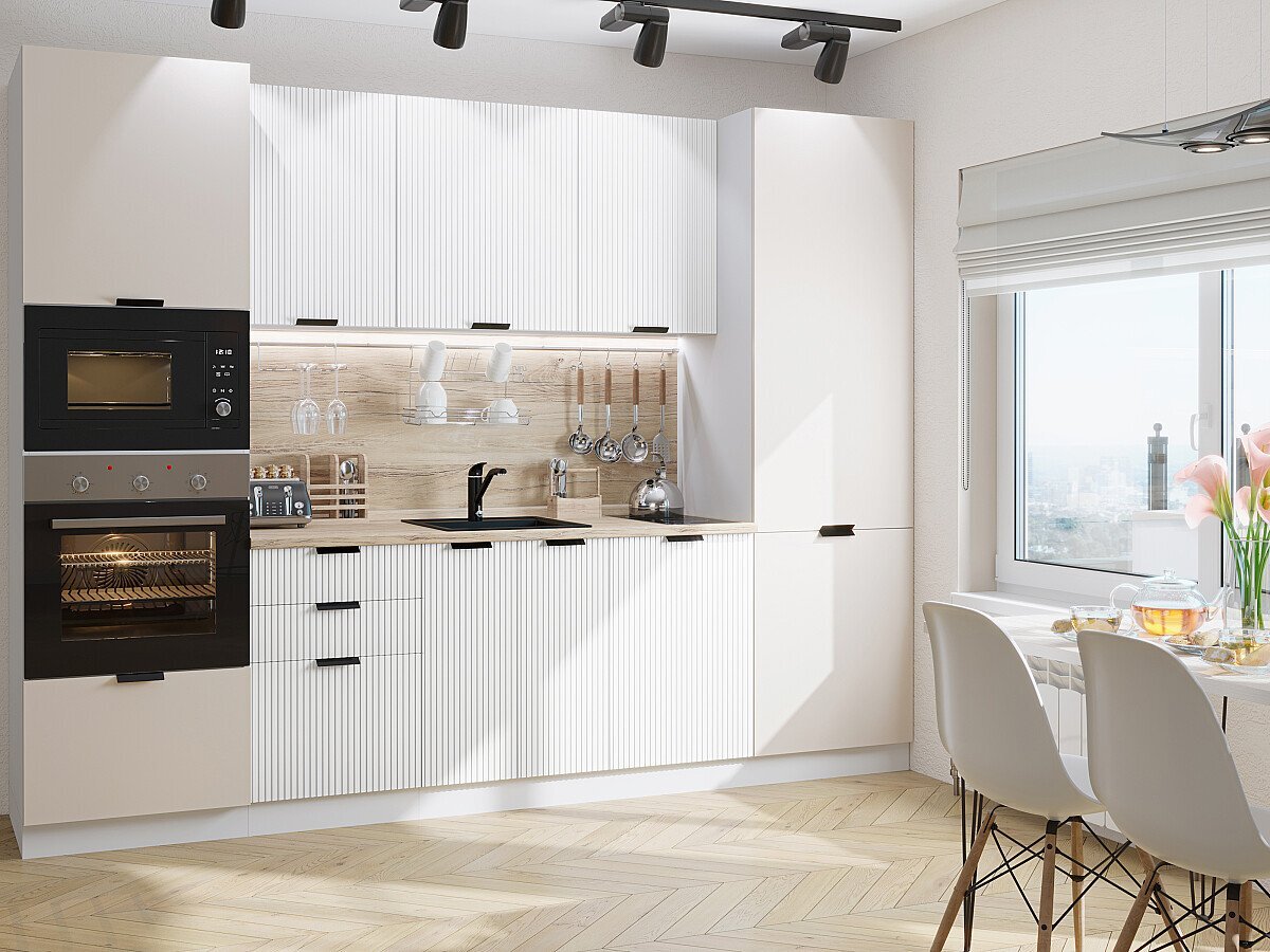 Кухня Евро / Евро Лайн - отличное сочетание итальянского стиля и современных мебельных решении. Актуальные матовые оттенки — это стильно и самодостаточно, при этом фасады отлично будут смотреться в комбинации с разными цветами и фактурами. Кухонный гарнитур Евро сочетает гладкие и рифленые фасады с вертикальными бороздками, они смотрятся естественно и не утяжеляют пространство. Использование рифленых фасадов в интерьере — доступный и простой прием, при этом достаточно эффектный. С их помощью любая, даже самая скучная поверхность становится декоративным элементом, они одинаково хорошо смотрятся как в современном, так и в классическом интерьере.