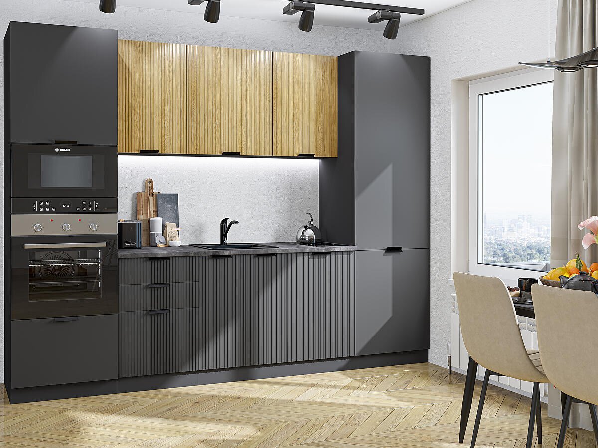 Прямая модульная кухня Евро Лайн-01 Дуб песочный/Антрацит - Graphite 2140*2800*600