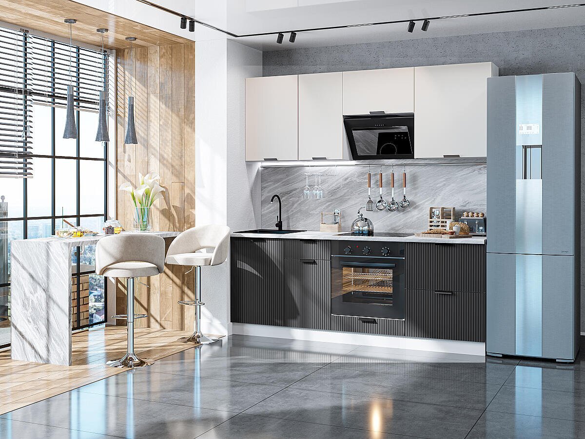 Прямая модульная кухня Евро Лайн-02 Агат/Антрацит - Белый 2140*2000*600