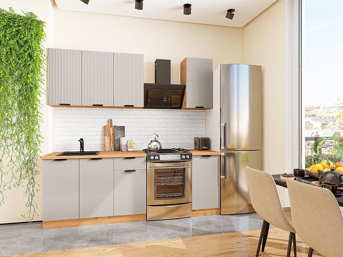 Прямая модульная кухня Евро Лайн-06 Агат - Дуб Вотан 2140*1400*600