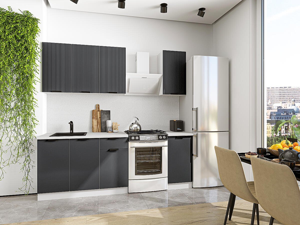 Прямая модульная кухня Евро Лайн-06 Антрацит - Белый 2140*1400*600