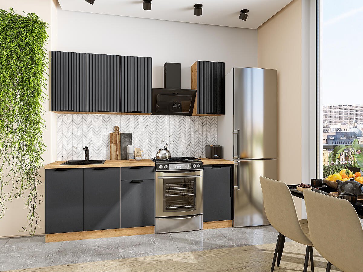 Прямая модульная кухня Евро Лайн-06 Антрацит - Дуб Вотан 2140*1400*600
