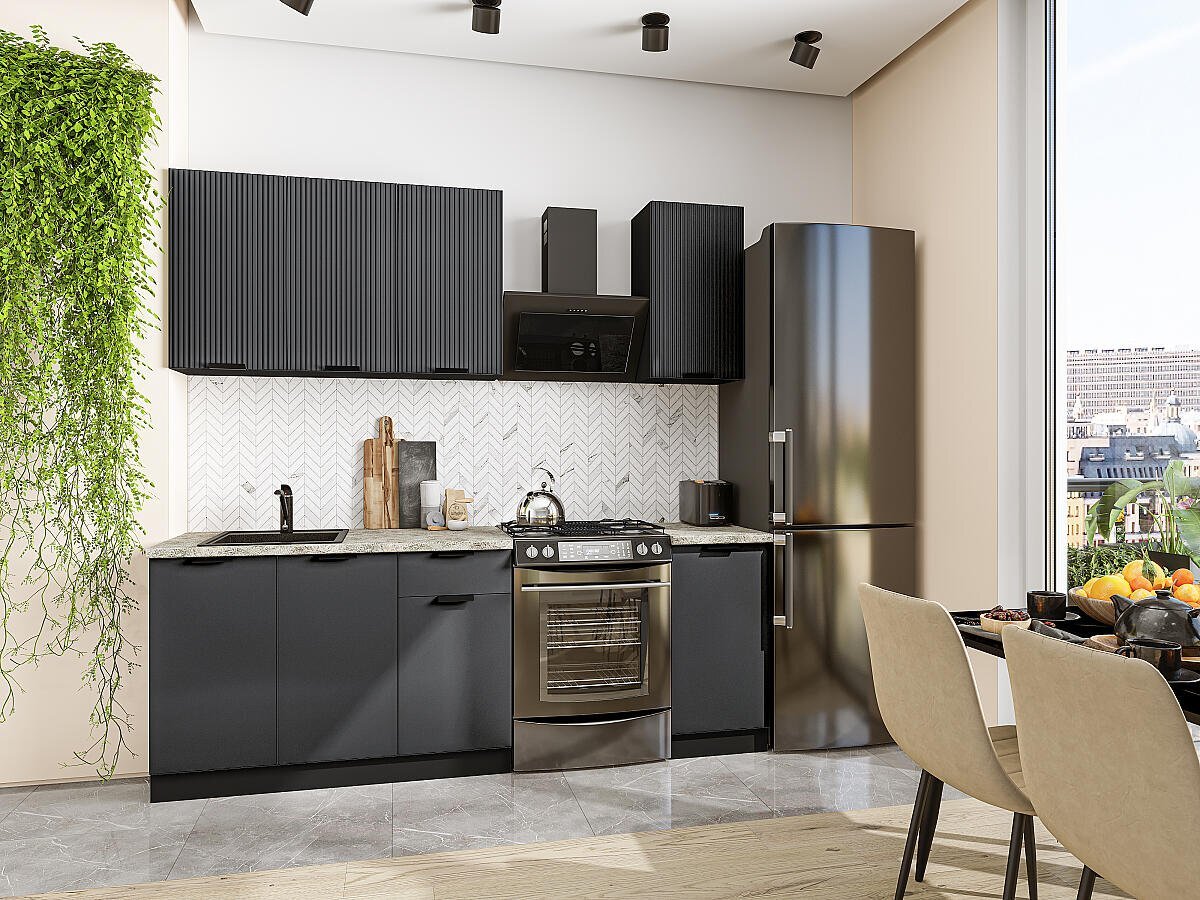 • Прямая модульная кухня Евро Лайн-06 Антрацит - Graphite 2140*1400*600