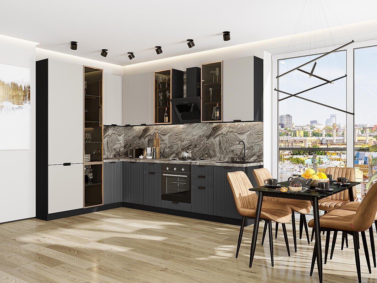 Кухня Евро / Евро Лайн - отличное сочетание итальянского стиля и современных мебельных решении. Актуальные матовые оттенки — это стильно и самодостаточно, при этом фасады отлично будут смотреться в комбинации с разными цветами и фактурами. Кухонный гарнитур Евро сочетает гладкие и рифленые фасады с вертикальными бороздками, они смотрятся естественно и не утяжеляют пространство. Использование рифленых фасадов в интерьере — доступный и простой прием, при этом достаточно эффектный. С их помощью любая, даже самая скучная поверхность становится декоративным элементом, они одинаково хорошо смотрятся как в современном, так и в классическом интерьере.