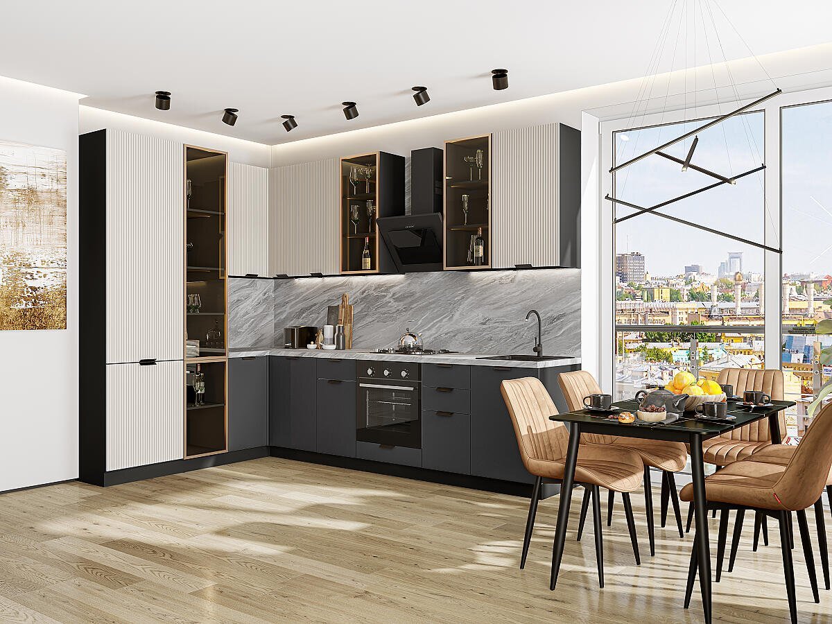 Прямая модульная кухня Евро Лайн-07 Агат/Антрацит - Graphite 2340*2000/3000*600
