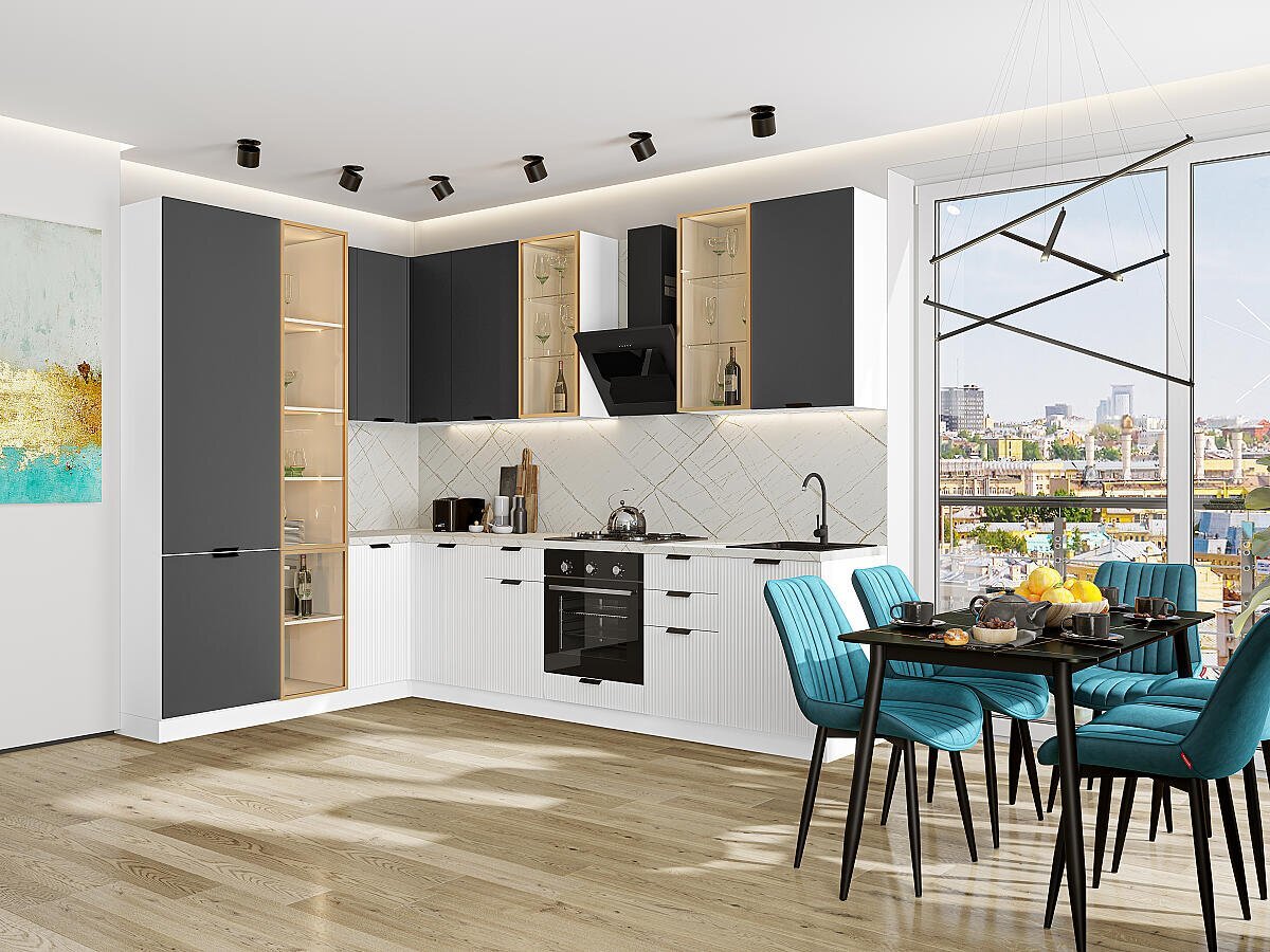 Прямая модульная кухня Евро Лайн-07 Антрацит/Белый - Белый 2340*2000/3000*600