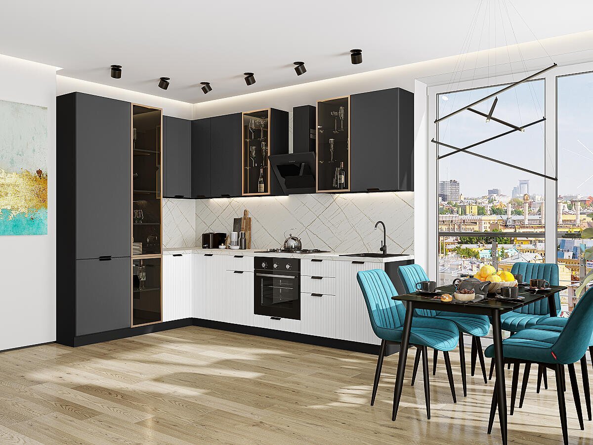 Прямая модульная кухня Евро Лайн-07 Антрацит/Белый - Graphite 2340*2000/3000*600
