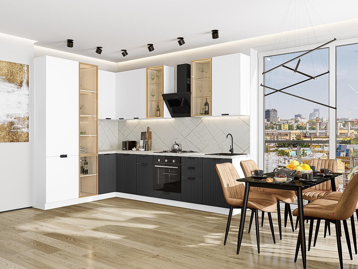 • Прямая модульная кухня Евро Лайн-07 Белый/Антрацит - Белый 2340*2000/3000*600