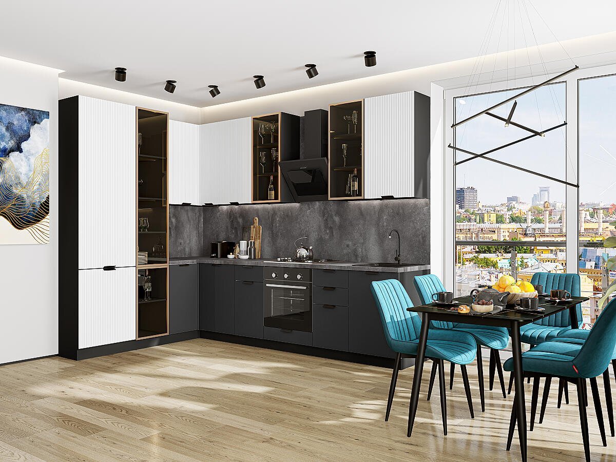 Прямая модульная кухня Евро Лайн-07 Белый/Антрацит - Graphite 2340*2000/3000*600