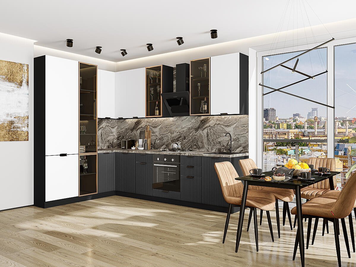 Кухня Евро / Евро Лайн - отличное сочетание итальянского стиля и современных мебельных решении. Актуальные матовые оттенки — это стильно и самодостаточно, при этом фасады отлично будут смотреться в комбинации с разными цветами и фактурами. Кухонный гарнитур Евро сочетает гладкие и рифленые фасады с вертикальными бороздками, они смотрятся естественно и не утяжеляют пространство. Использование рифленых фасадов в интерьере — доступный и простой прием, при этом достаточно эффектный. С их помощью любая, даже самая скучная поверхность становится декоративным элементом, они одинаково хорошо смотрятся как в современном, так и в классическом интерьере.