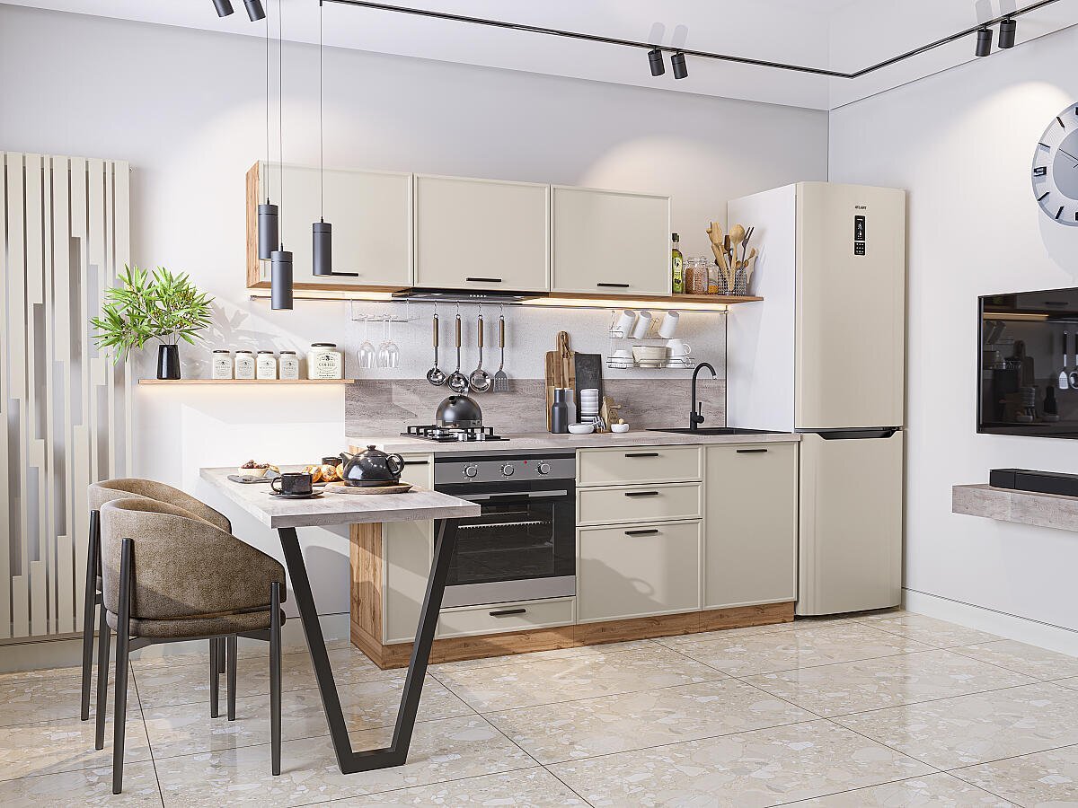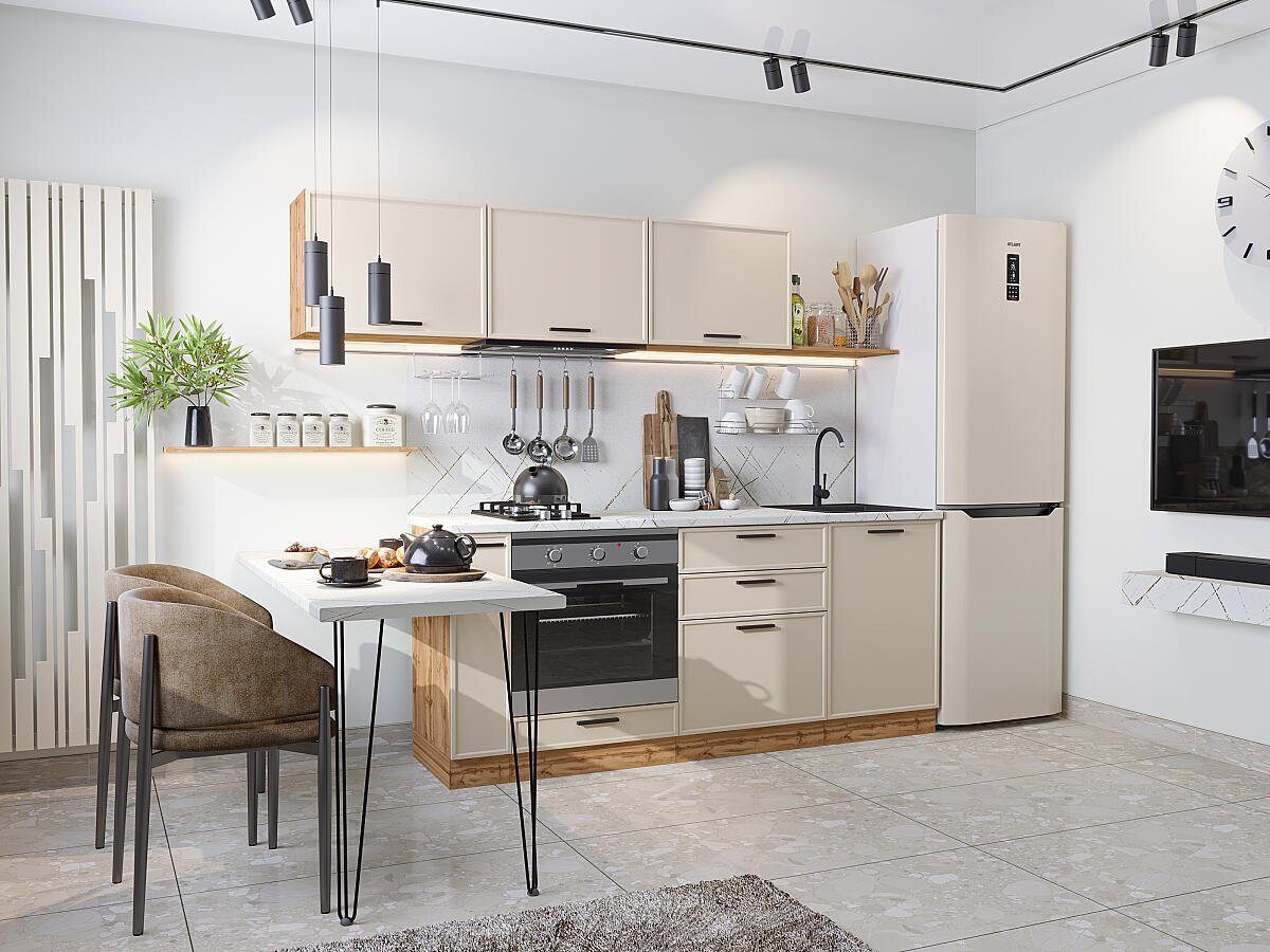 Прямая модульная кухня Фрейм-01 Cream Silk - Дуб Вотан 1782*2300*600