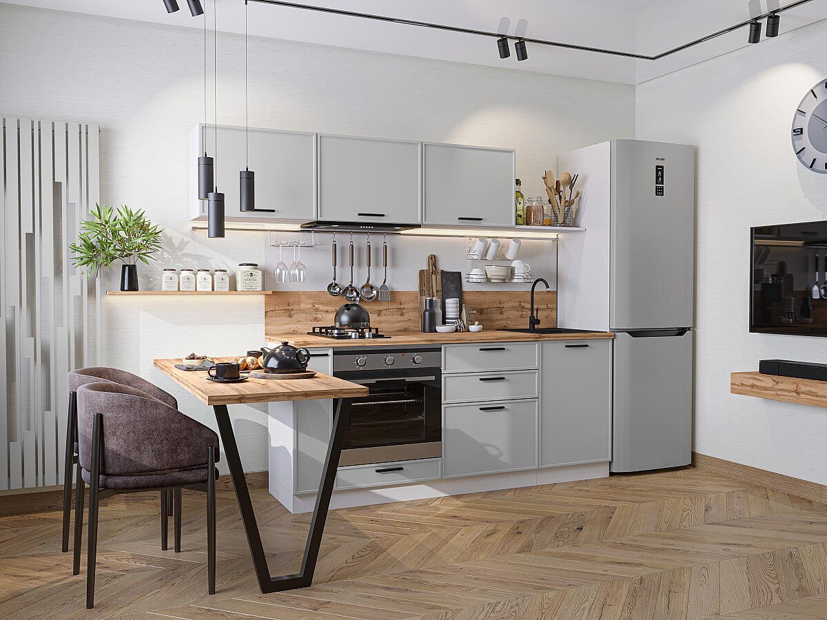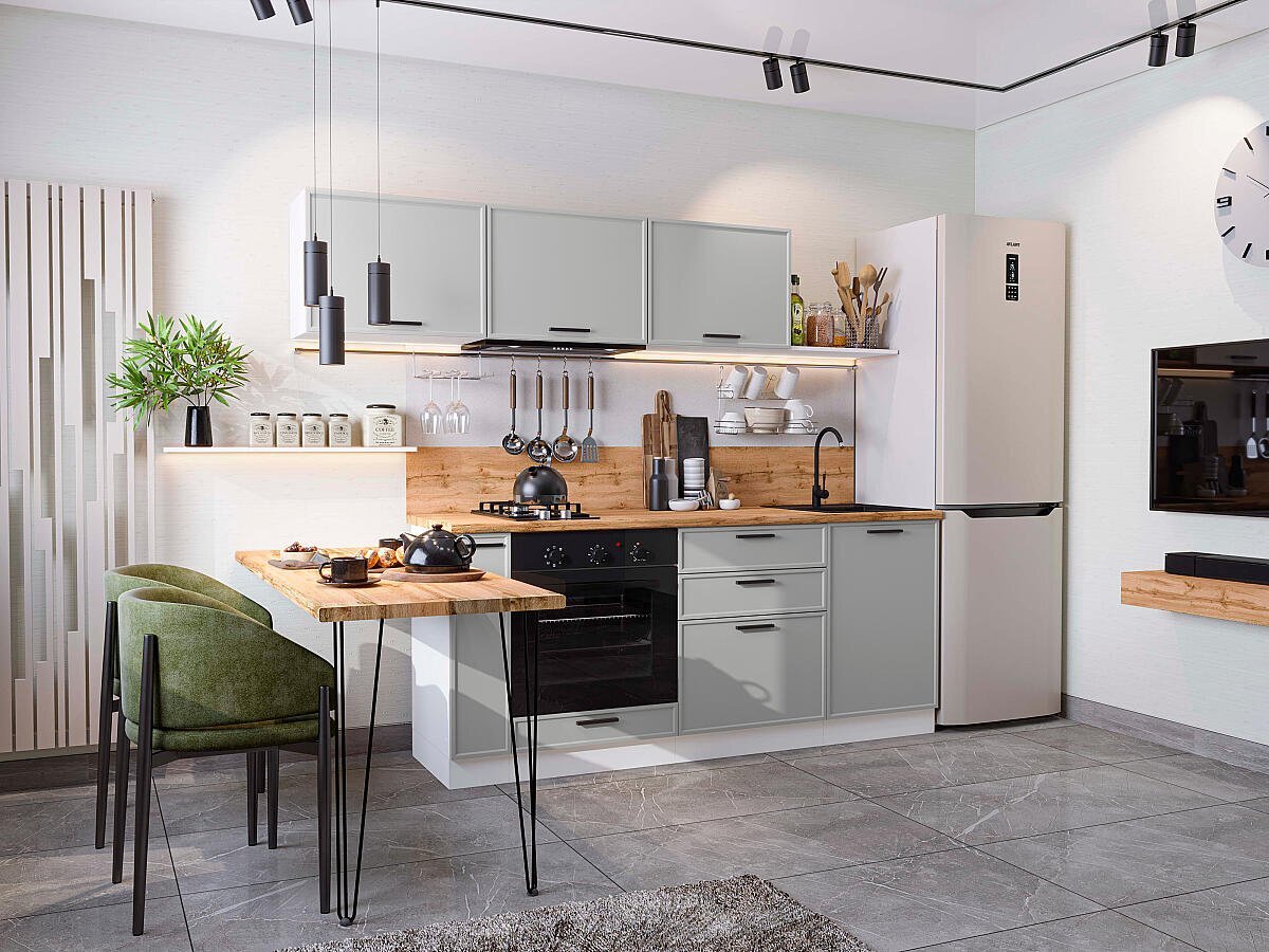 • Прямая модульная кухня Фрейм-01 Grey Silk - Белый 1782*2300*600