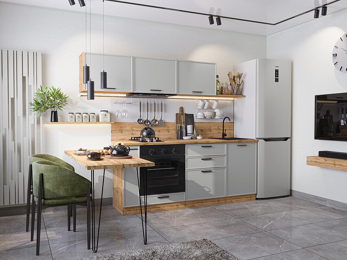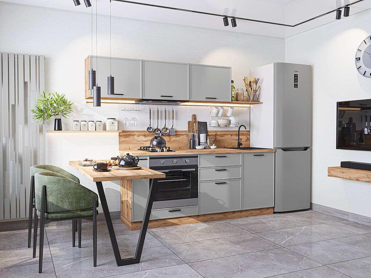 • Прямая модульная кухня Фрейм-01 Grey Silk - Дуб Вотан 1782*2300*600