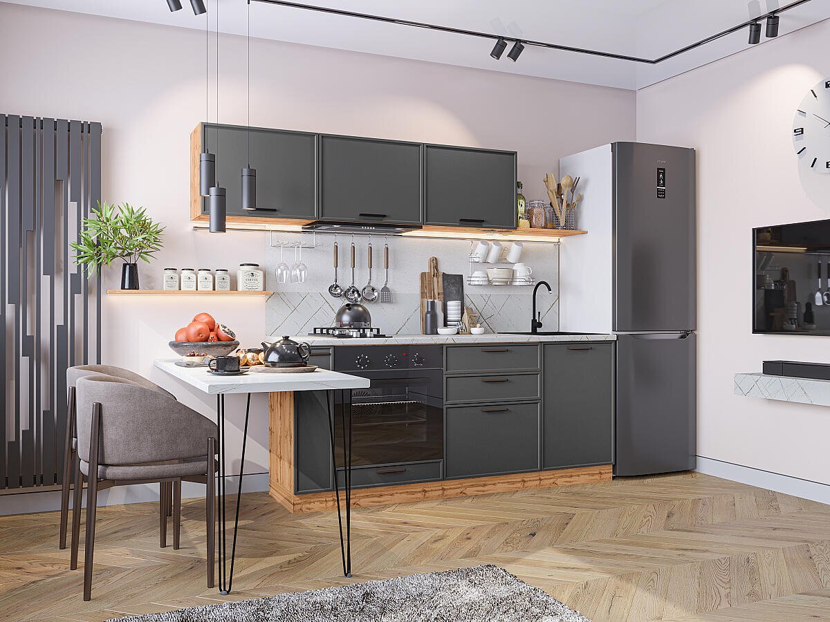 Прямая модульная кухня Фрейм-01 Stormy Silk - Дуб Вотан 1782*2300*600