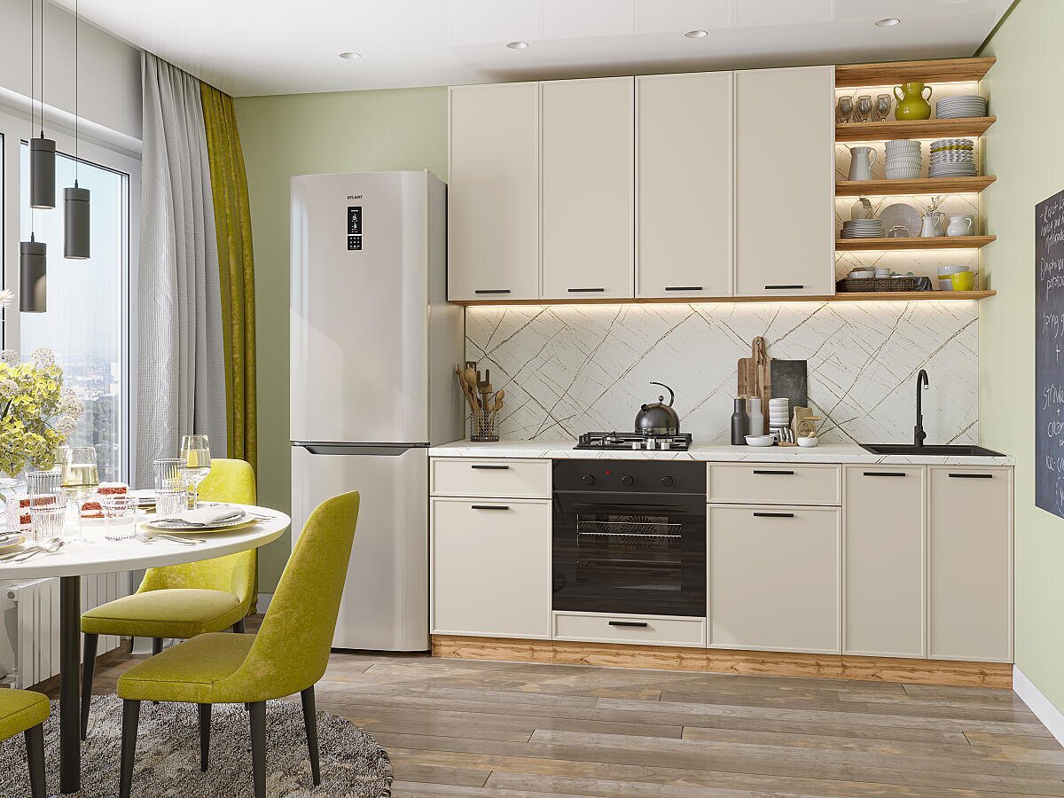 Прямая модульная кухня Фрейм-02 Cream Silk - Дуб Вотан 2340*2200*600