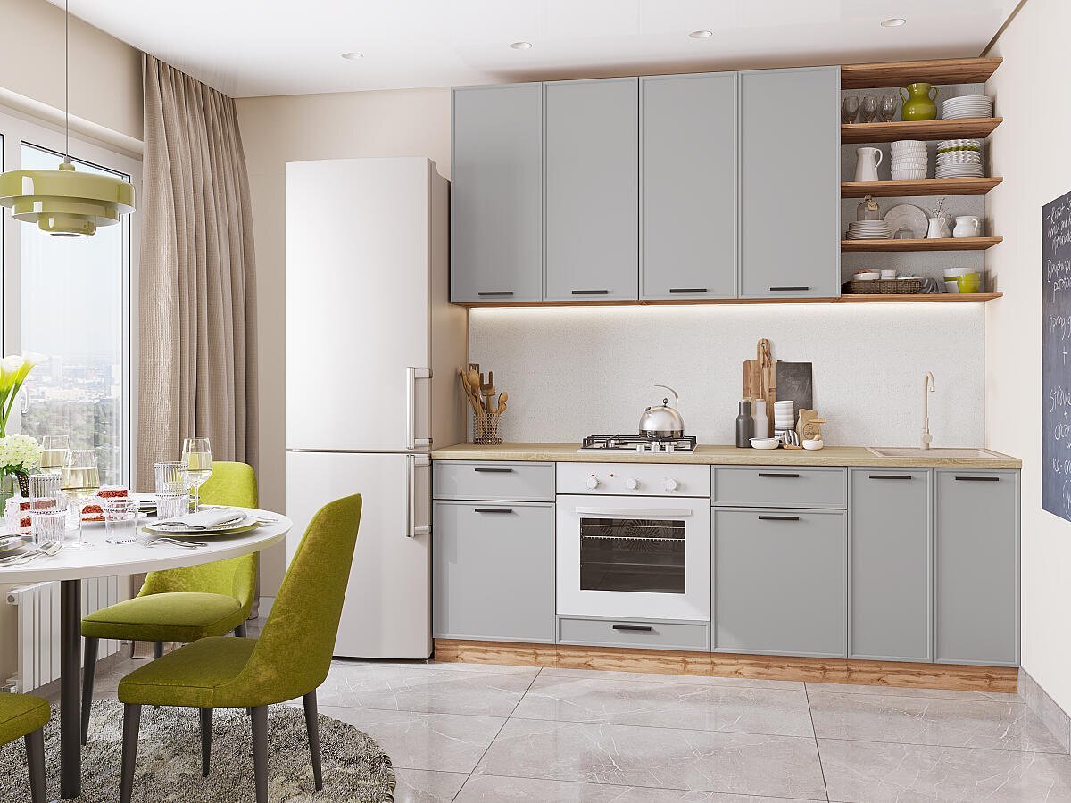 Прямая модульная кухня Фрейм-02 Grey Silk - Дуб Вотан 2340*2200*600