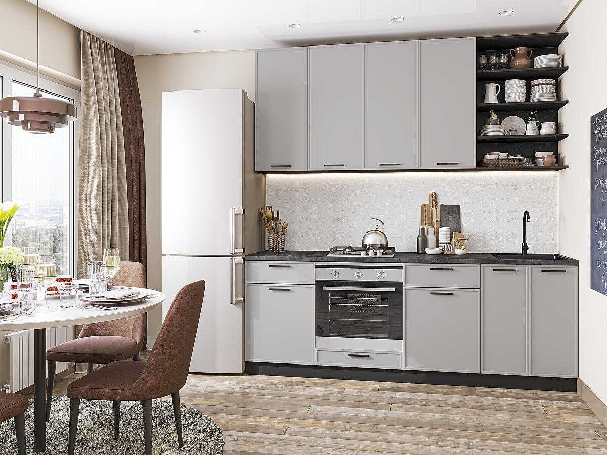 Прямая модульная кухня Фрейм-02 Grey Silk - Graphite 2340*2200*600
