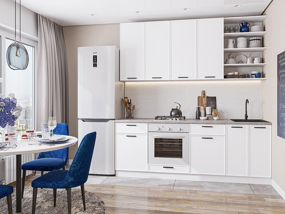 Прямая модульная кухня Фрейм-02 White Silk - Белый 2340*2200*600