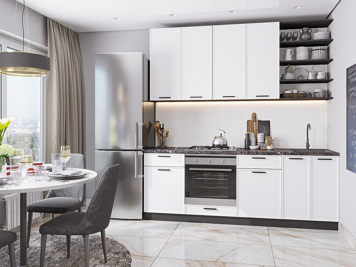 Прямая модульная кухня Фрейм-02 White Silk - Graphite 2340*2200*600