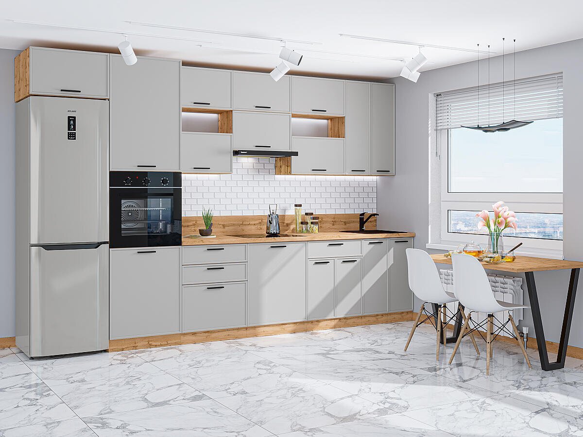 Прямая модульная кухня Фрейм-04 Grey Silk - Дуб Вотан 2340*3600*600