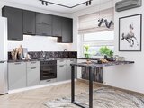 Вы можете купить Прямая модульная кухня Фрейм-05 Stormy Silk/Grey Silk - Graphite/Белый 2340*2400*600 оптом в нашем магазине, предложим цену с оптовой скидкой.