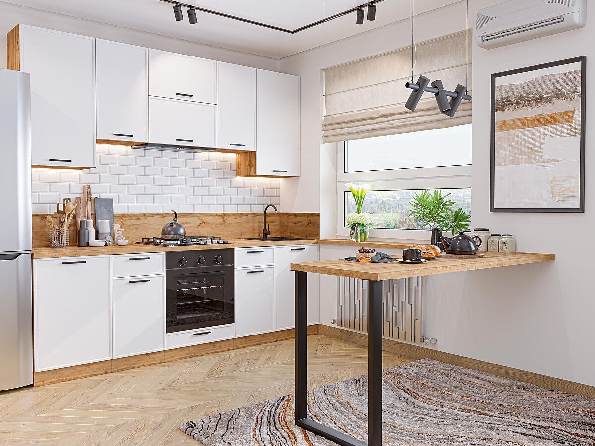 Прямая модульная кухня Фрейм-05 White Silk - Дуб Вотан 2340*2400*600