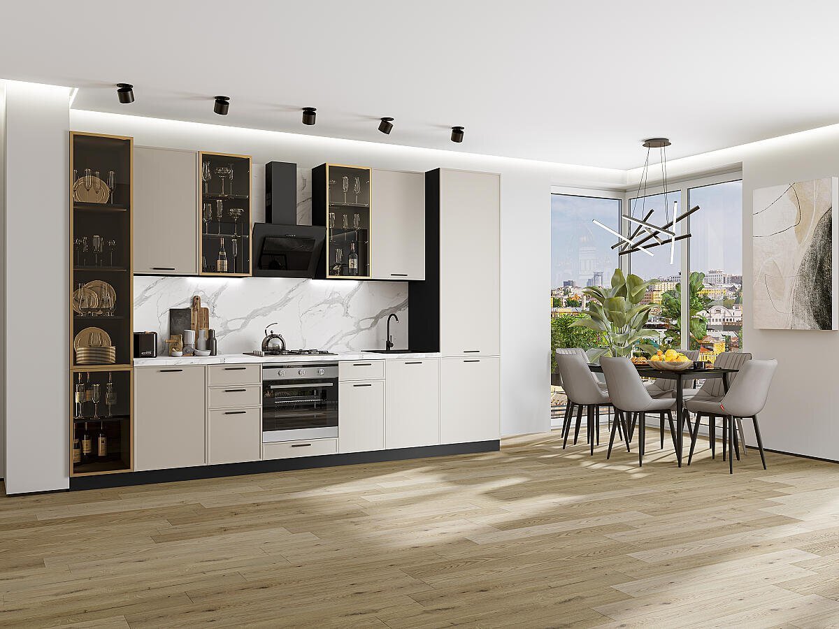 Прямая модульная кухня Фрейм-06 Cream Silk - Graphite 2340*3400*600