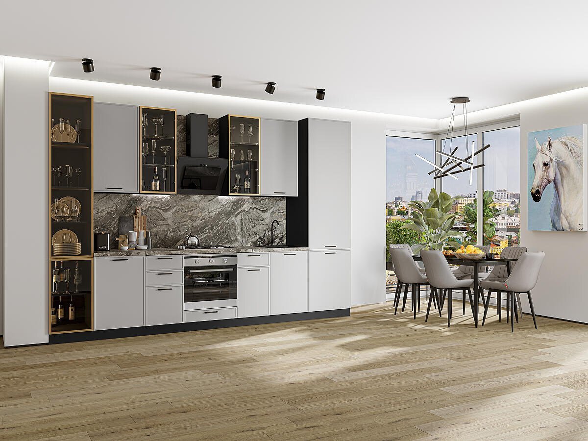 • Прямая модульная кухня Фрейм-06 Grey Silk - Graphite 2340*3400*600