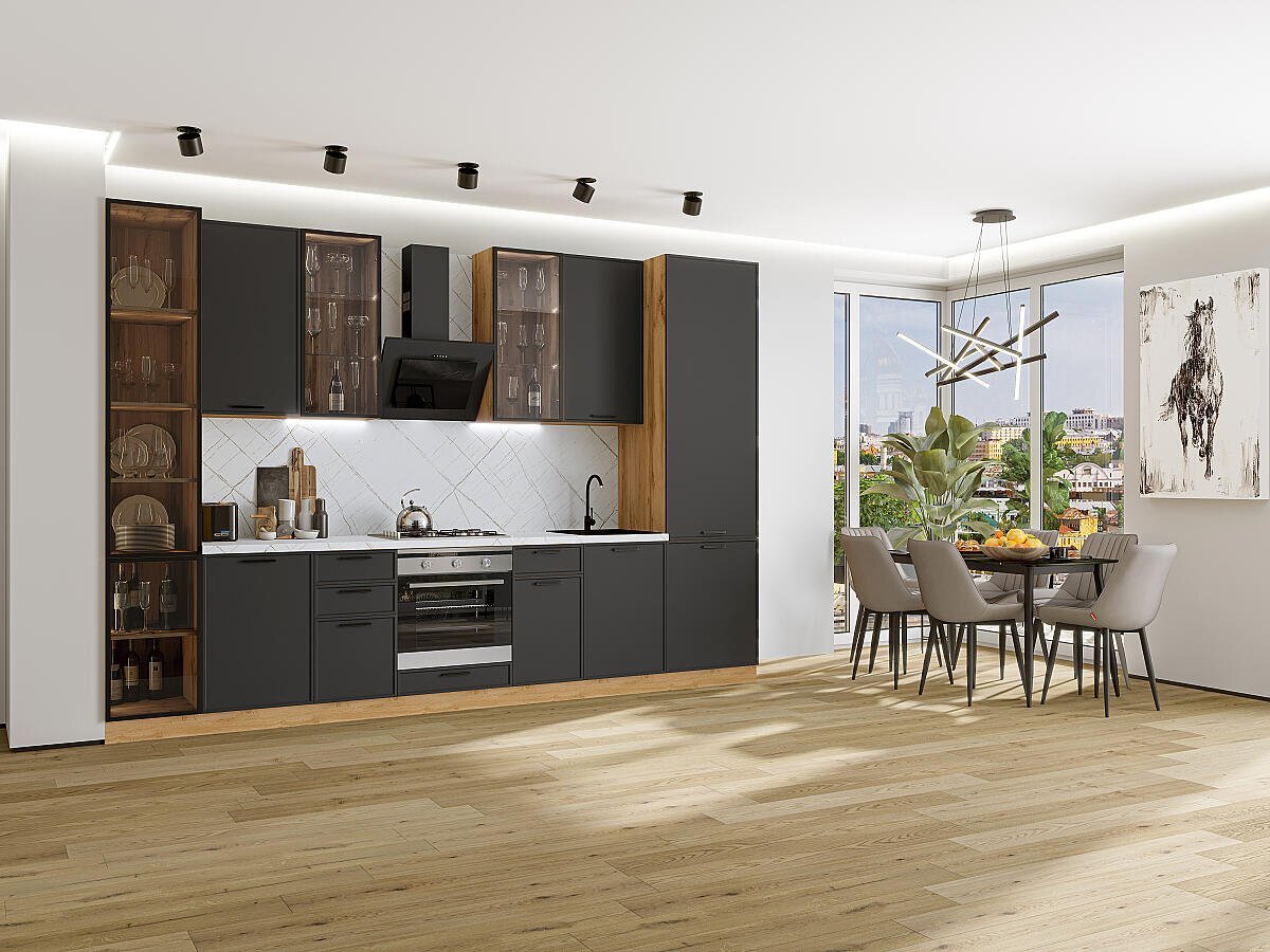 Прямая модульная кухня Фрейм-06 Stormy Silk - Дуб Вотан 2340*3400*600