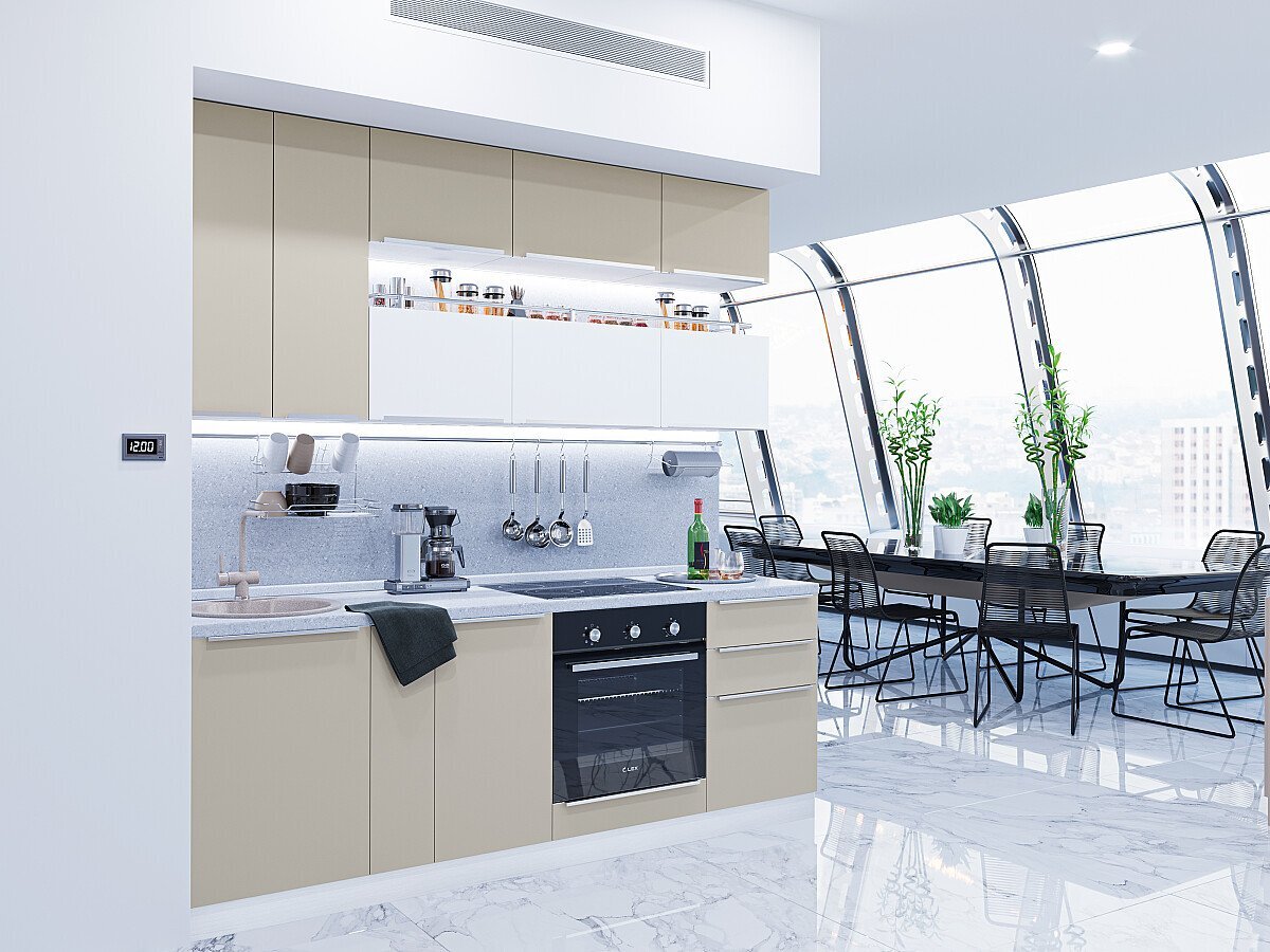 Прямая модульная кухня Фьюжн-01 Cream Silk/Silky White - Белый 2340*2300*600
