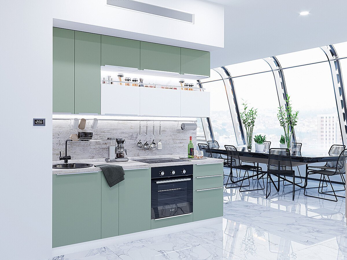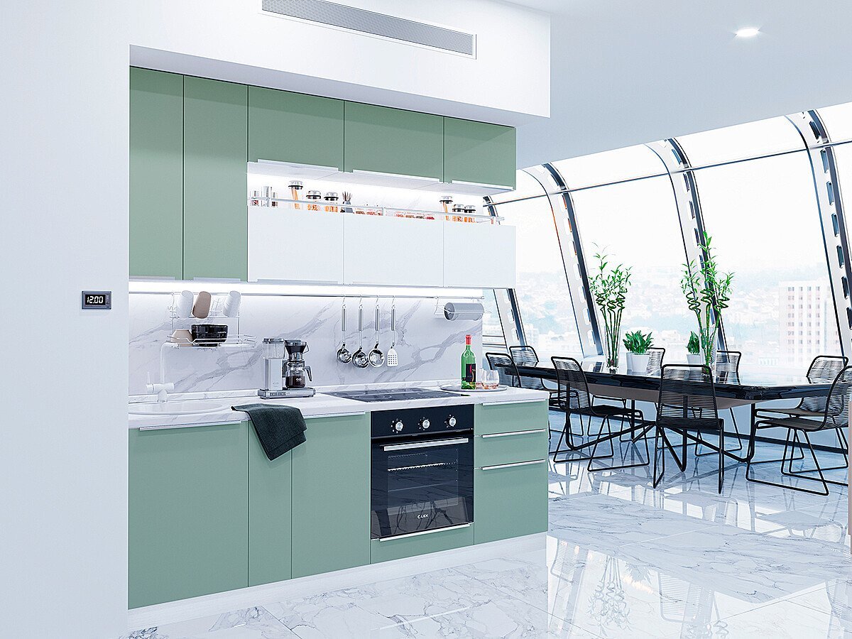 Прямая модульная кухня Фьюжн-01 Silky Mint/Silky White - Белый 2340*2300*600