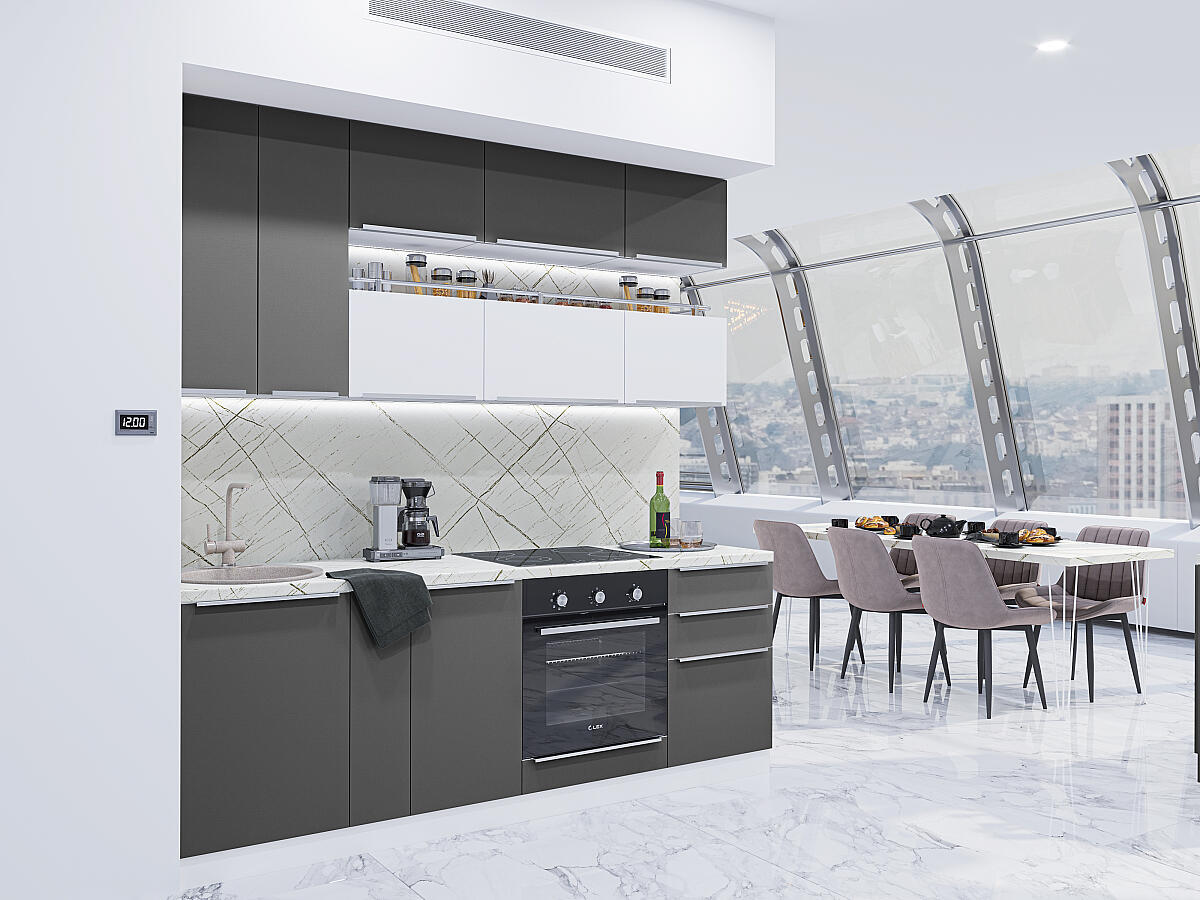 Прямая модульная кухня Фьюжн-01 Stormy Silk/Silky White - Белый 2340*2300*600