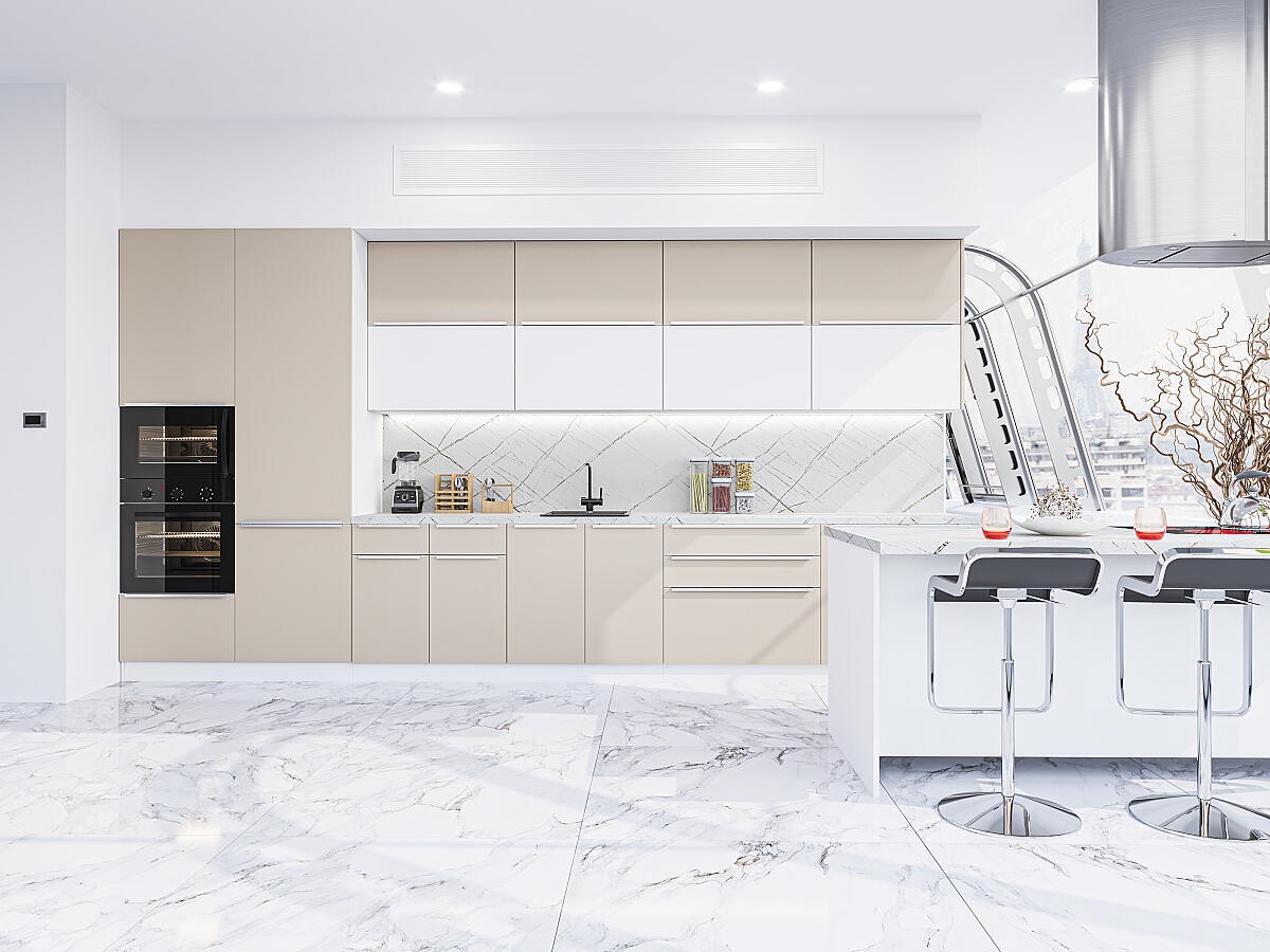Прямая модульная кухня Фьюжн-02 Cream Silk/Silky White - Белый 2140*4400*600