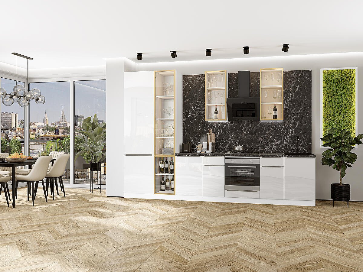 Прямая модульная кухня Фьюжн-08 Angel - Белый 2340*3400*600